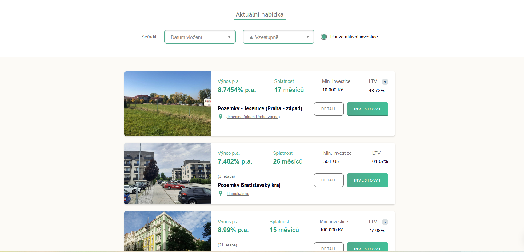 Upon logging in, you will be presented with the current list of available investment projects. You can easily compare these projects and click on the ‘Detail’ button to access more information about each one. Utilizing filters, you can also view previously closed projects or sort them according to your preferences.
