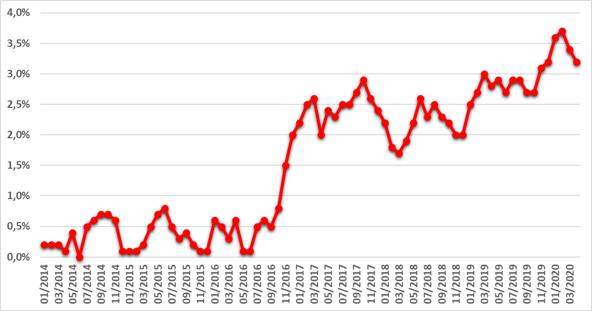 Měsíční vývoj meziročního indexu spotřebitelských cen