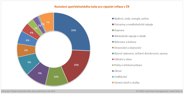 Zkráceně a zjednodušeně lze říct, že si ČSÚ vytvoří tzv. spotřební koš s více než 800 položkami, a sleduje jejich aktuální spotřebitelské ceny. Koš je rozdělený na druhy zboží a služeb v rozdílném poměru podle toho, jaký podíl zastupují v celkové spotřebě domácnosti (potraviny, drogerie, doprava, služby…). Mezi položkami spotřebního koše tak najdete vše od chleba, vajec, mléka a masa až po cenu za vydání cestovního pasu či nákladů za kremaci. A počítá i s tím, že čerstvý rohlík si koupíte mnohem častěji než třeba husu.