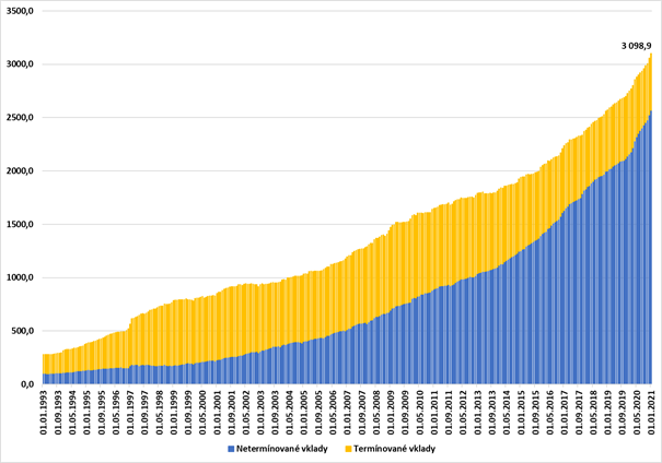 Vklady českých domácností u bank (v miliardách Kč)