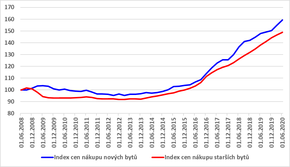 Ceny nových bytů za posledních 12 let vzrostly téměř o 60 %, u starších bytů to bylo téměř o 50 %, což i se započtením 3-4 letého období velmi mírného poklesu cen po ekonomické krizi v letech 2008-9 znamená průměrný roční růst okolo 5 % u nových bytů a lehce přes 4 % u starších bytů.