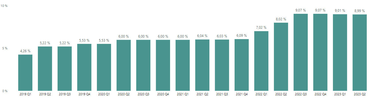 Graf 1 Vývoj nabízených výnosů na platformě od 1. kvartálu 2019