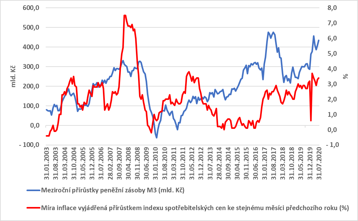 Závislost vývoje peněžní zásoby a inflace