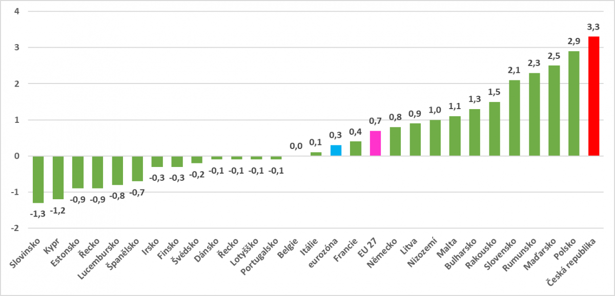 Nárůst cen v České republice je podle Eurostatu nejvyšší z celé Evropské unie. Inflace v Česku dosáhla mimo jiné i kvůli pandemii koronaviru v dubnu 3,3 %. Jde o harmonizovaný údaj – Český statistický úřad zveřejnil údaj jen o desetinu nižší – 3,2 %. V praxi to znamená, že si za zboží každodenní spotřeby i některé služby oproti jiným zemím připlatíme. Potraviny, zboží a služby podražily ale i v sousedních zemích – například v Polsku, Maďarsku nebo na Slovensku. Ceny naopak klesaly ve Slovinsku, Estonsku nebo Řecku.