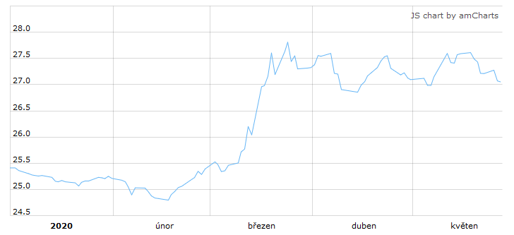 Vývoj kurzu EUR/CZK od začátku letošního roku