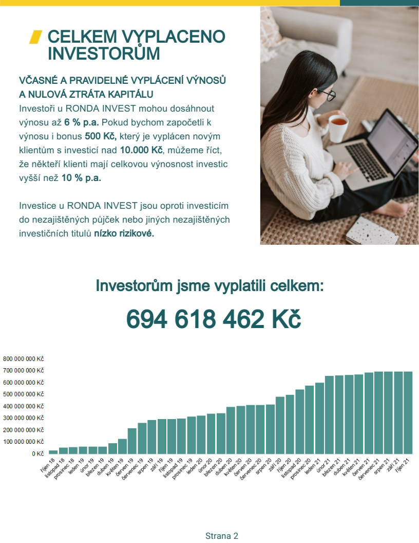 Přízeň našich investorů se projevuje i v číslech. Díky naším investorům jsme podnikatelům na nové projekty půjčili 1 199 418 436 Kč. Našim investorům jsme vyplatili celkem 694 618 462 Kč z toho 47 935 230 Kč na úrocích. Prohlédněte si první část našeho reportu RONDA INVEST v číslech, kde se dozvíte více.