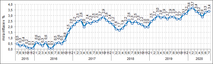 Meziroční inflace v červenci letošního roku činila 3,4 % a dle vyjádření zástupců České národní banky po zbytek letošního roku setrvá nad 3 %. Tempo růstu cen v České republice patří k nejrychlejším v celé Evropské unii. Zdražují zejména potraviny, z nichž byl za poslední rok růst cen nejvýraznější u ovoce (o 22,8 %), ale podražily také uzeniny, vejce, mouka, cukr či vepřové maso. Nárůst cen nepotěšil ani kuřáky a milovníky alkoholu, jelikož ceny cigaret za poslední rok vzrostly o 13,8 % a lihovin o 10,6 % a očekává se, že i nadále porostou.