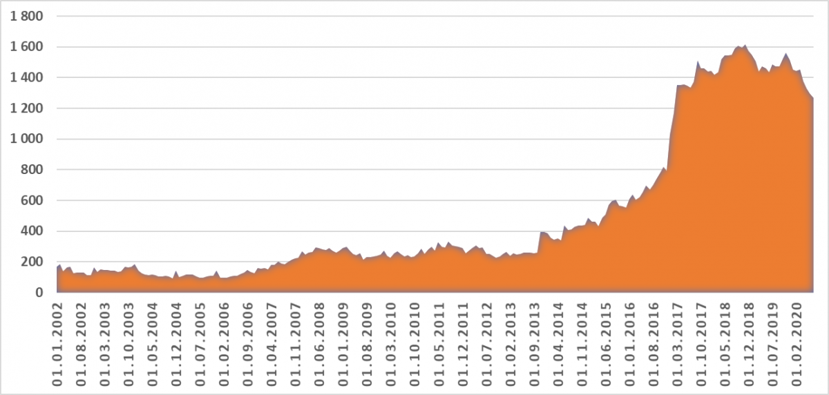 V absolutních číslech narostly vklady nerezidentů z eurozóny v českých bankách v období od začátku roku 2016 do konce roku 2018 zhruba o bilion korun (z přibližně 600 miliard korun na 1,6 bilionu korun). Vklady nerezidentů ze zbytku světa vzrostly přibližně ze 190 miliard korun na začátku roku 2016 na 400 miliard na konci roku 2017.