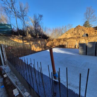 • Základní popis nemovitosti: Jedná se o mírně svažitý pozemek o celkové výměře 897 m², ke kterému bylo vydáno stavební povolení k výstavbě rodinného domu (vily). Bylo započato s budováním částečně zapuštěného objektu s dvěma nadzemními podlažími. Celková užitná plocha bude přibližně 222 m².